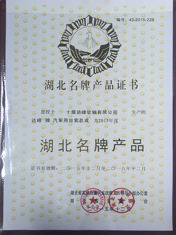 湖北名牌產(chǎn)品證書(shū)2015年