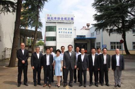 豐田合成株式會(huì)社于1949成立于日本愛知縣,是日本豐田汽車公司投資的一家全球零部件企業(yè),公司主要生產(chǎn)經(jīng)營汽車密封產(chǎn)品、內(nèi)外裝飾部件、機(jī)能部件、安全系統(tǒng)產(chǎn)品等,在全球17個(gè)國家/地區(qū)擁有65家集團(tuán)公司,擁有3萬8千多名員工。其中在中國有13家,分布在天津、廣東、福建、張家港、十堰等地。其中十堰豐田合成正奧于2019年1月與湖北正奧集團(tuán)合資成立。此行是合資后宮崎社長首次到訪豐田合成正奧。
